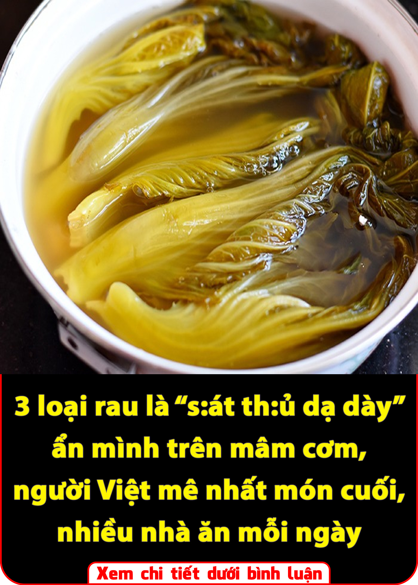 Dưa cải muối với vị chua đặc trưng được nhiều người yêu thích, nhưng dưa muối quá lâu lại là “vua phá hoại dạ dày”. Trong quá trình lên men, hàm lượng muối và axit tăng cao, nếu ăn lâu dài sẽ kích thích mạnh niêm mạc dạ dày, làm tăng tiết axit dạ dày, dễ dẫn đến trào ngược, viêm loét.