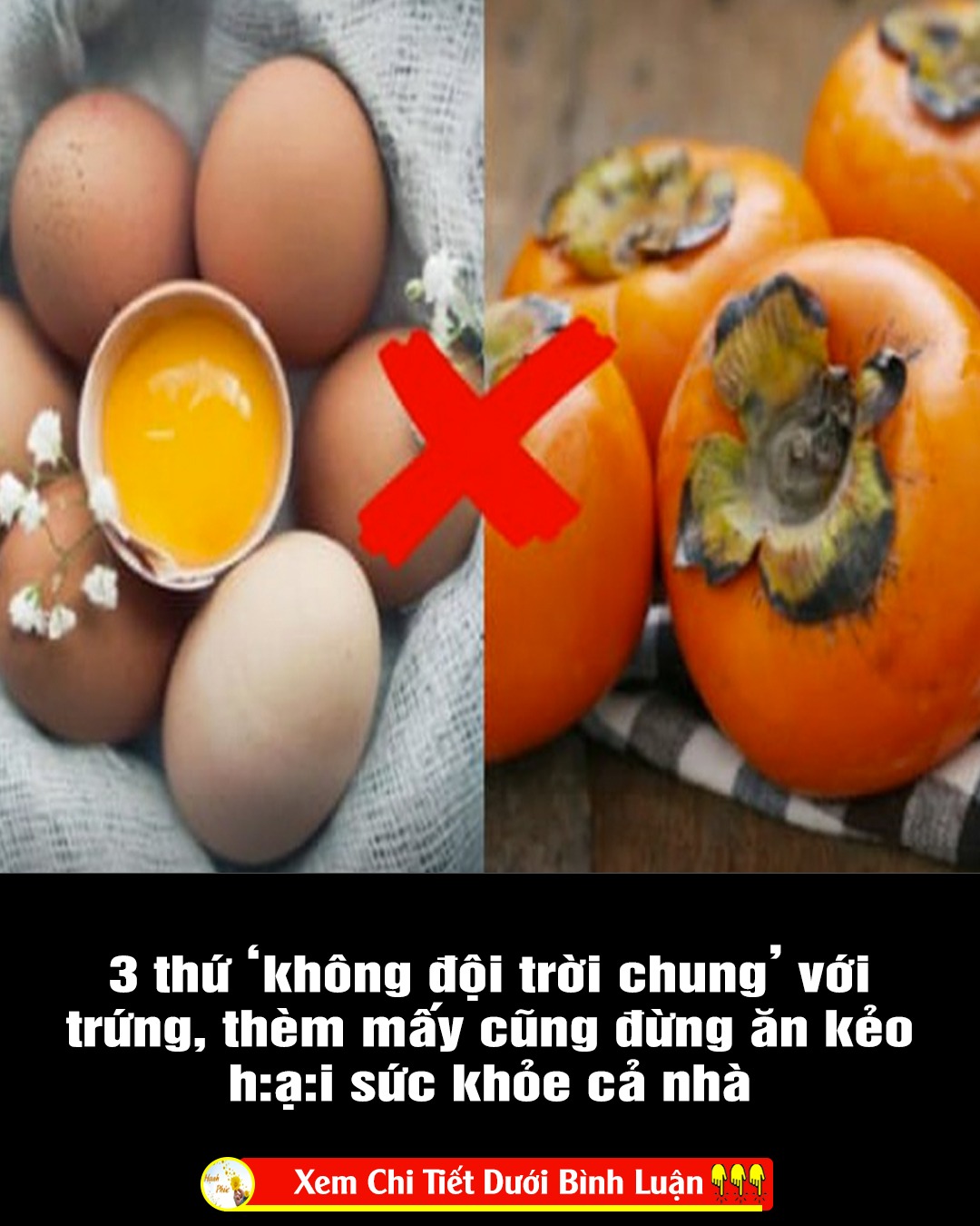 Không ăn chung trứng với quả hồng: Vì rất dễ bị ngộ độc thực phẩm, có thể dẫn đến viêm dạ dày cấp tính với các dấu hiệu như ói, đau bụng, tiêu chảy.