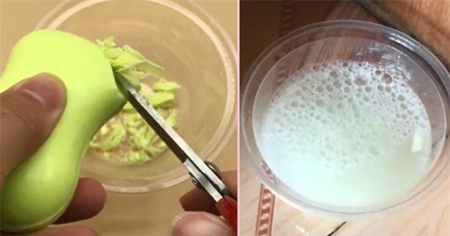 Đầu tiên, bạn hãƴ chuẩn bị một chiếc bát hoặc hộp đựng và một cục xà bông. Lấy kéo cắt một ít xà bông bỏ vào bát và đổ một lượng nước vừa đủ. Dùng đũa khuấy đều cho xà bông tan hoàn toàn trong nước.