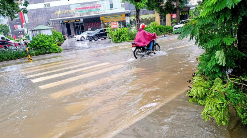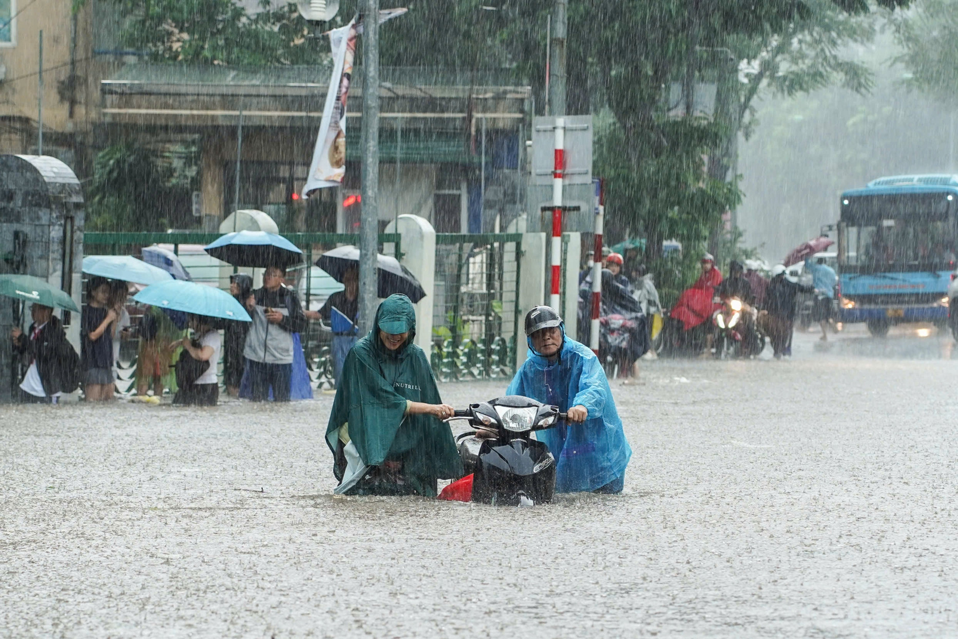 Mưa lớn đã khiến nhiều tuyến phố ngập úng nặng. Giao thông ùn tắc, việc đi lại của người dân gặp khó khăn.