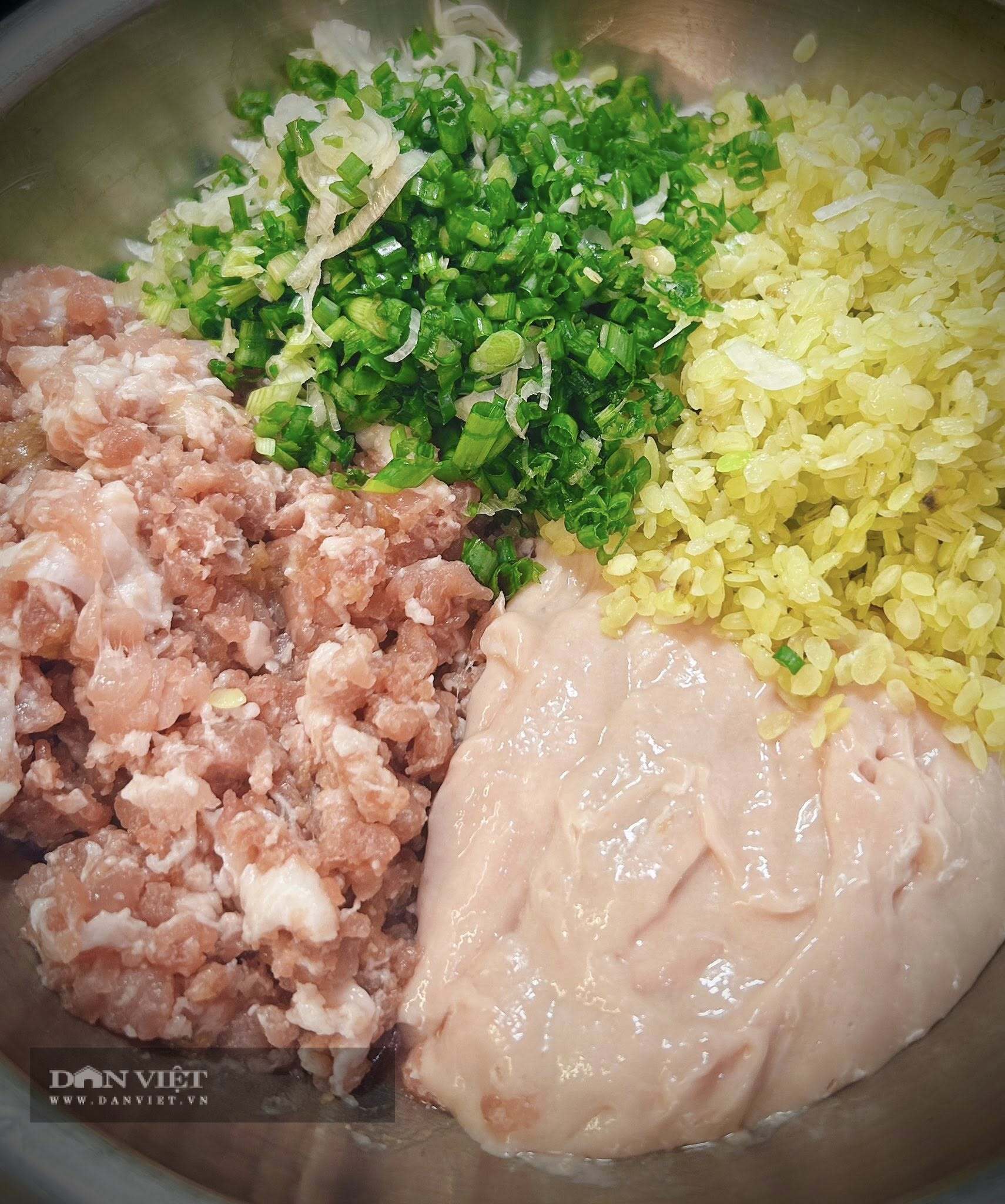 Cách làm chả cốm: Thêm hành lá, có chút màu xanh món ăn cũng đẹp mắt hơn