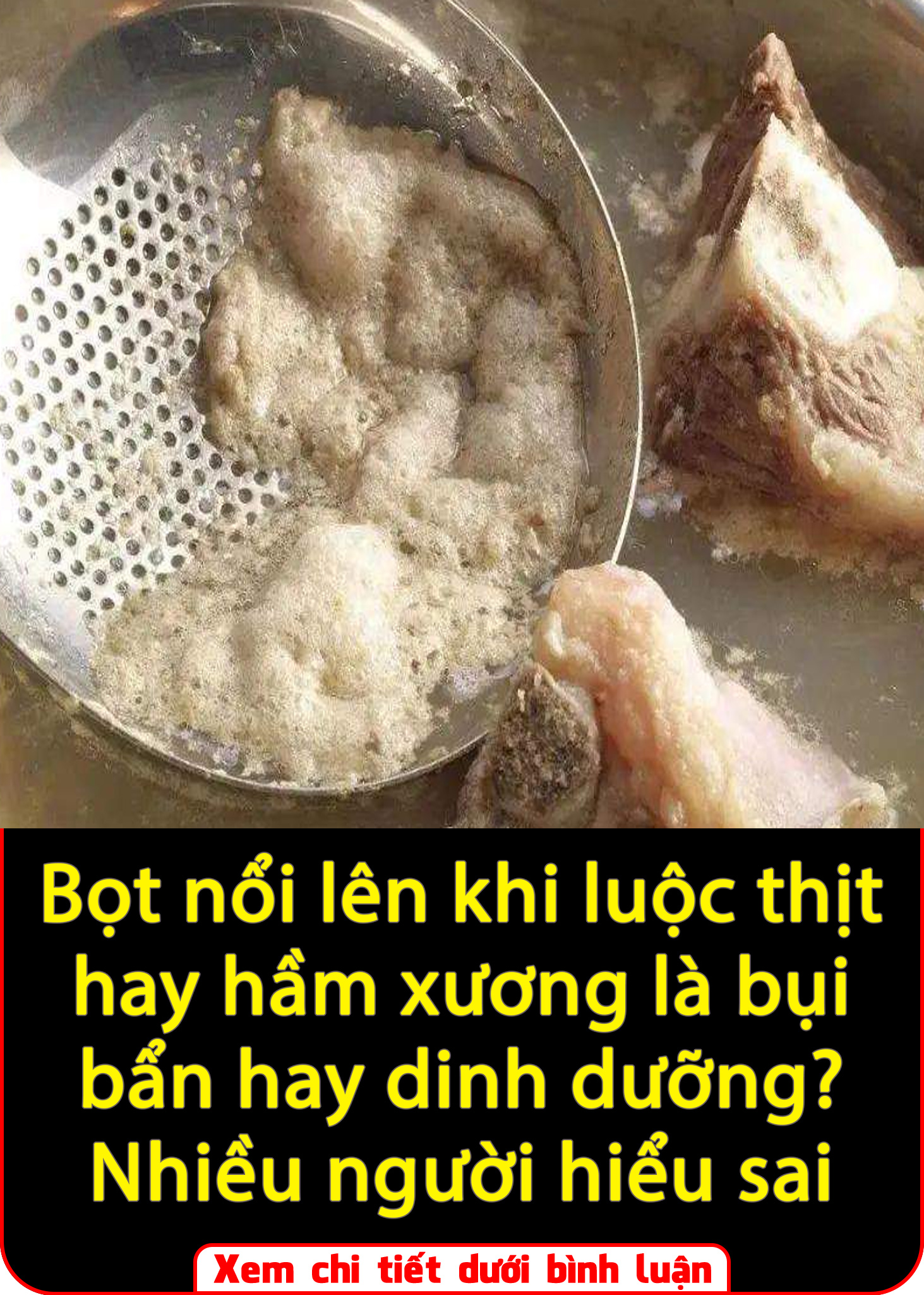 Kết luận: Lớp bọt nổi lên khi luộc thịt, hầm xương không hoàn toàn là bụi bẩn hay chất bẩn. Bọt màu nâu hoặc đỏ sẫm chứa máu và tạp chất, cần vớt bỏ. Trong khi đó, bọt trắng chủ yếu là protein và dưỡng chất có lợi, nên được giữ lại. Hiểu rõ về bọt khi nấu thịt giúp bạn có thể chế biến thực phẩm ngon, sạch và bổ dưỡng hơn.