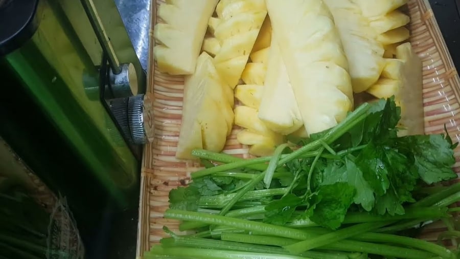 Để có một ly nước ép chất lượng, bạn nên chọn dứa chín tự nhiên và cần tây tươi, không bị héo. Dứa gọt vỏ, bỏ mắt, cắt nhỏ; cần tây rửa sạch, cắt khúc. Bạn có thể ép riêng từng loại rồi trộn lại hoặc xay chung với một ít nước lọc. Nếu cảm thấy khó uống, có thể thêm vài giọt chanh hoặc một chút mật ong, nhưng không nên lạm dụng đường vì sẽ làm giảm hiệu quả giảm cân.