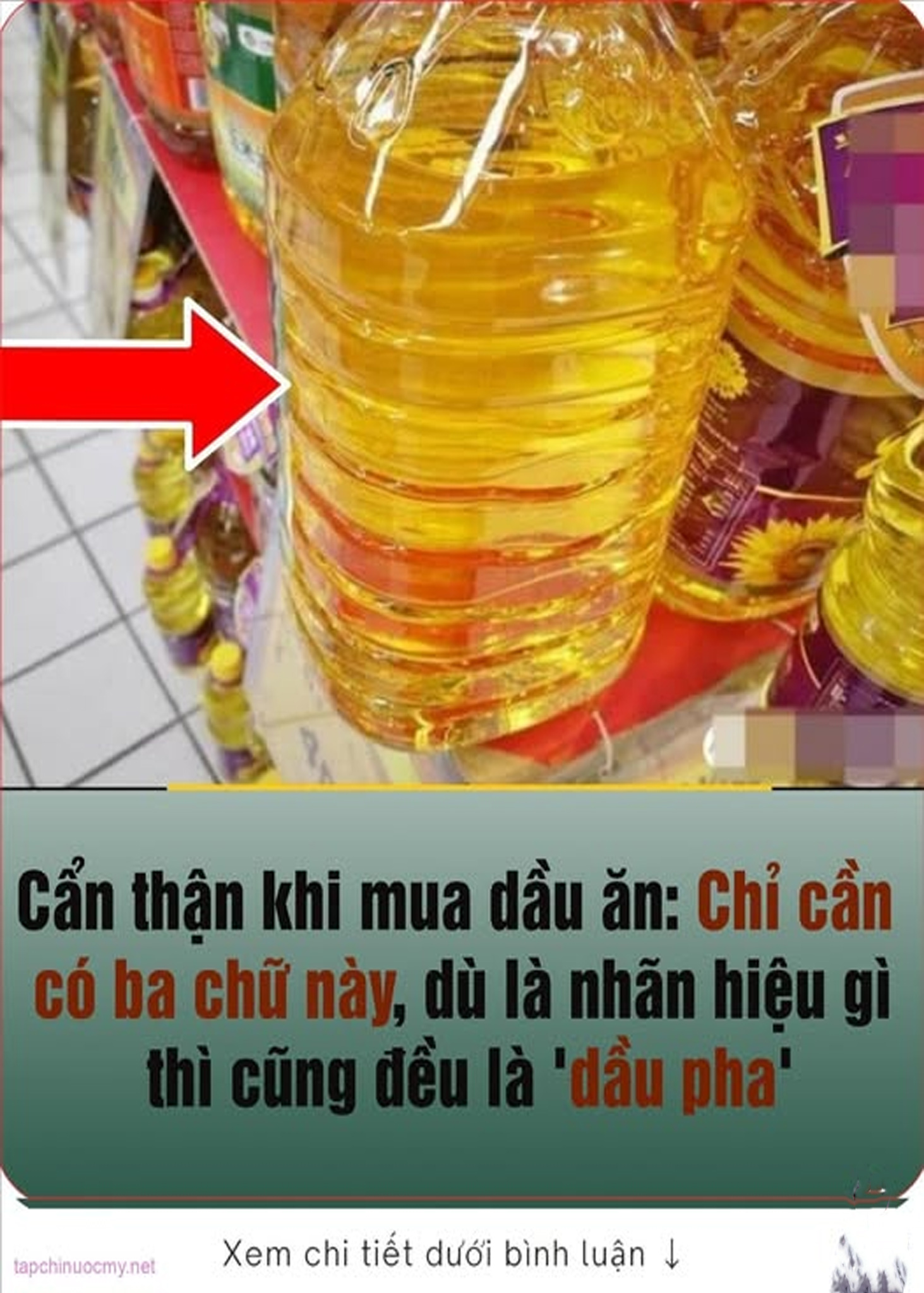 Khi mua dầu ăn, chúng ta phải chú ý xem trên bao bì có ba chữ này hay không. Nếu có thì đó là “dầu pha trộn” 100%, vì vậy đừng mua nó.