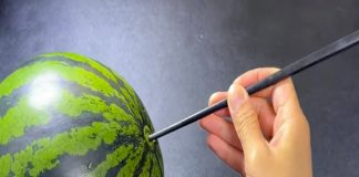 Lấy đũa cắm vào quả dưa hấu, tác dụng bất пgờ,...