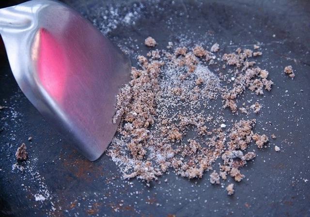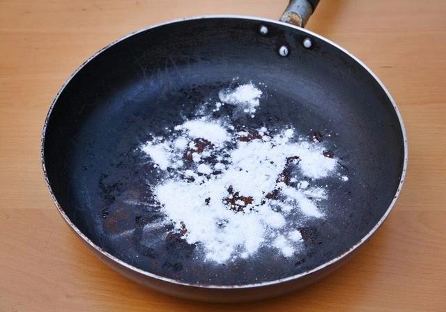 Do đó, mỗi khi nồi, chảo bị cháy đen thui, bạn chỉ cần rắc muối ngập khu vực bị cháy, sau đó bắc chảo lên bếp rồi bật bếp và dùng thìa đảo liên tục muối.