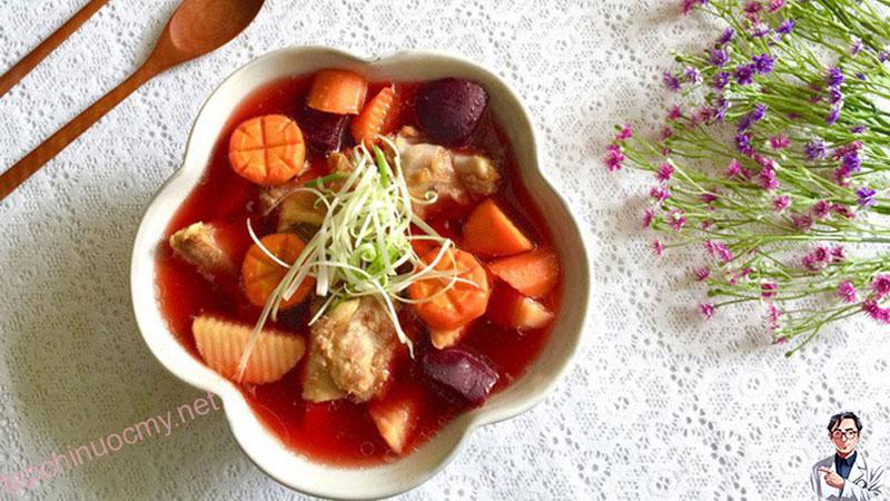 1. Canh củ dền với cà rốt, khoai tây và xương