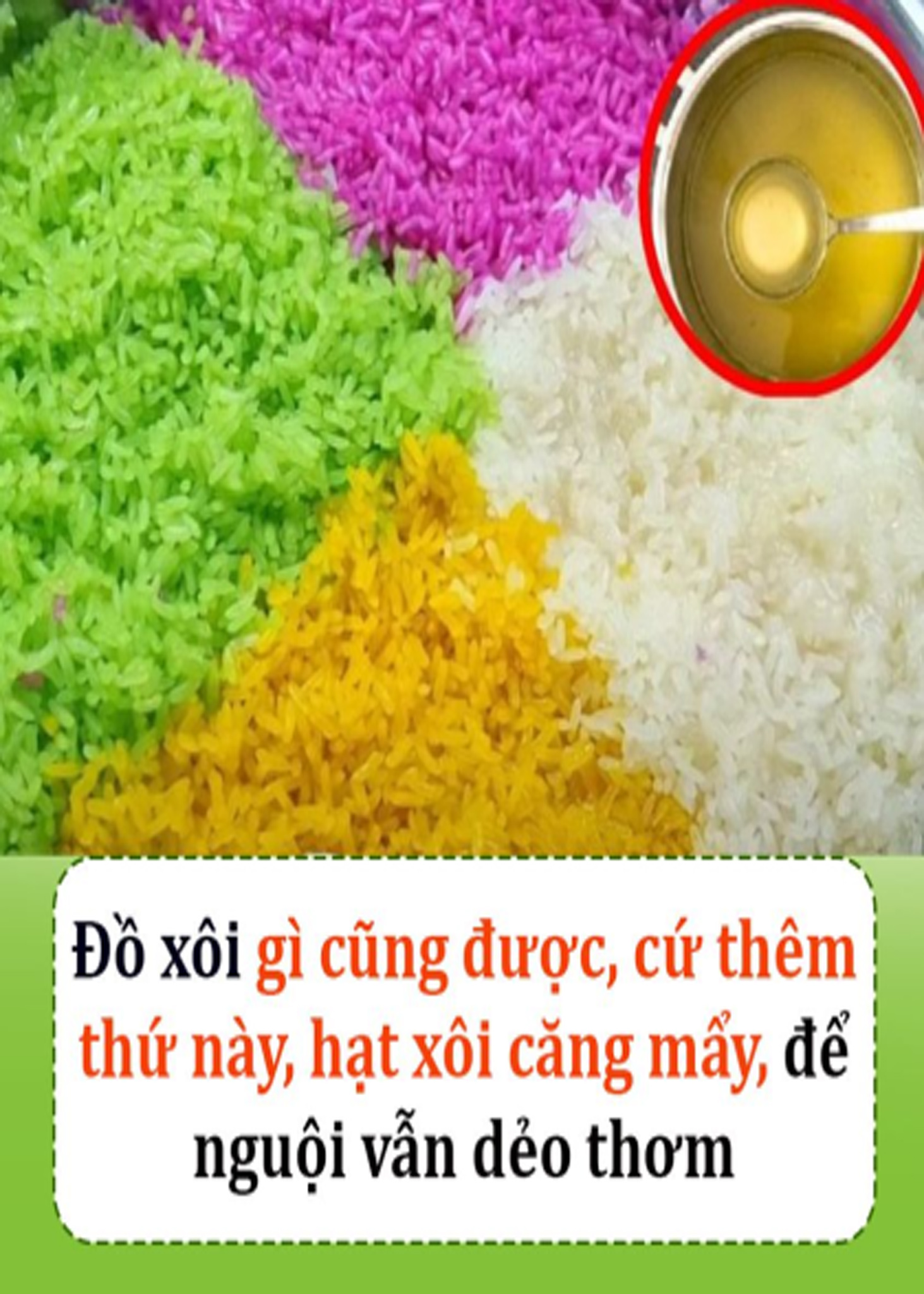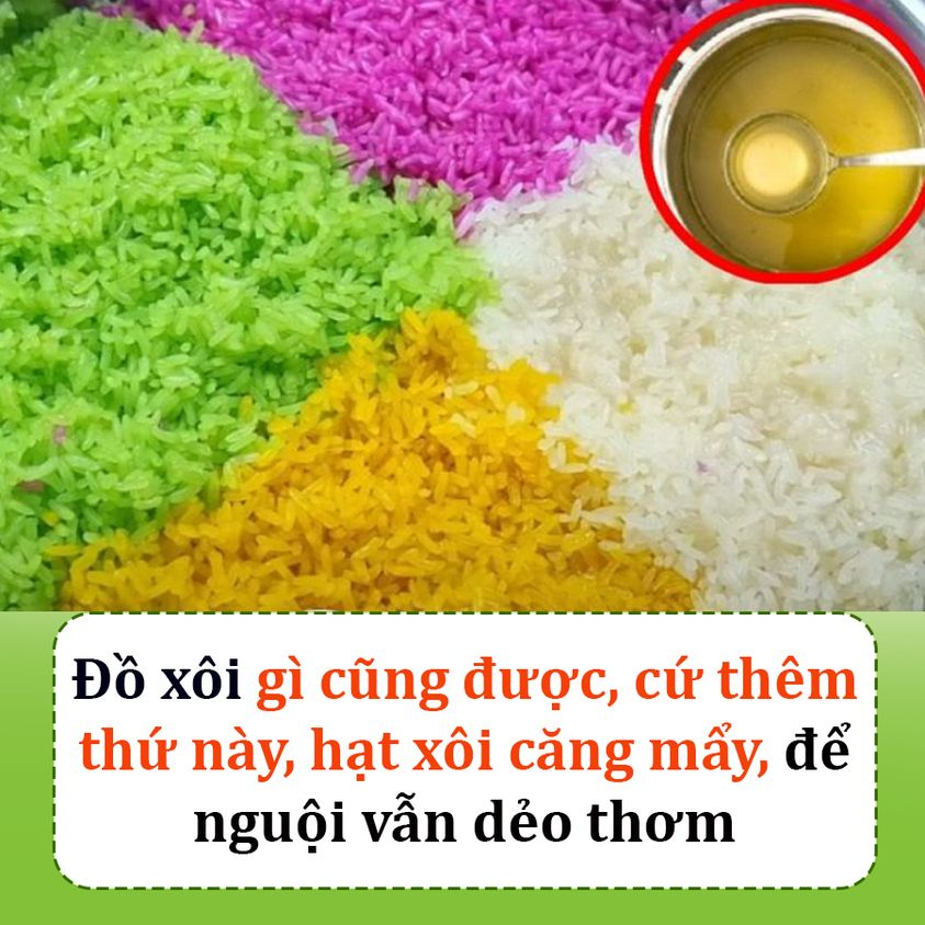 – Để hạt xôi căng bóng, khi xôi chín, hãy trộn thêm một chút dầu ăn hoặc mỡ gà và đảo đều rồi mới xới xôi ra.