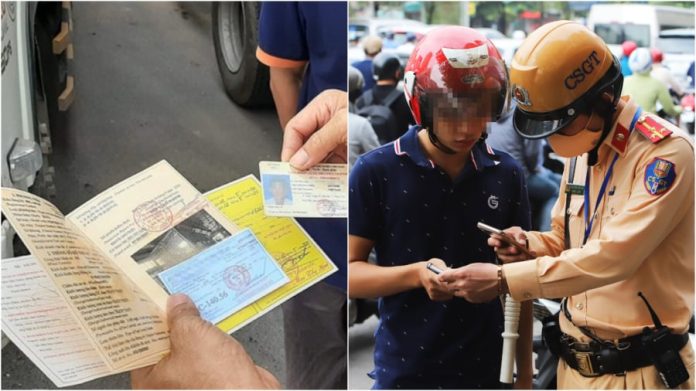 – Trường hợp người điều khiển phương tiện giao thông xuất trình các giấy tờ thì kiểm tra, đối chiếu trực tiếp các giấy tờ đó;