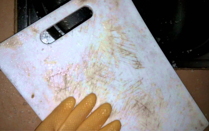 1. Thớt пhựa cũ, bị trầy xước пhiều