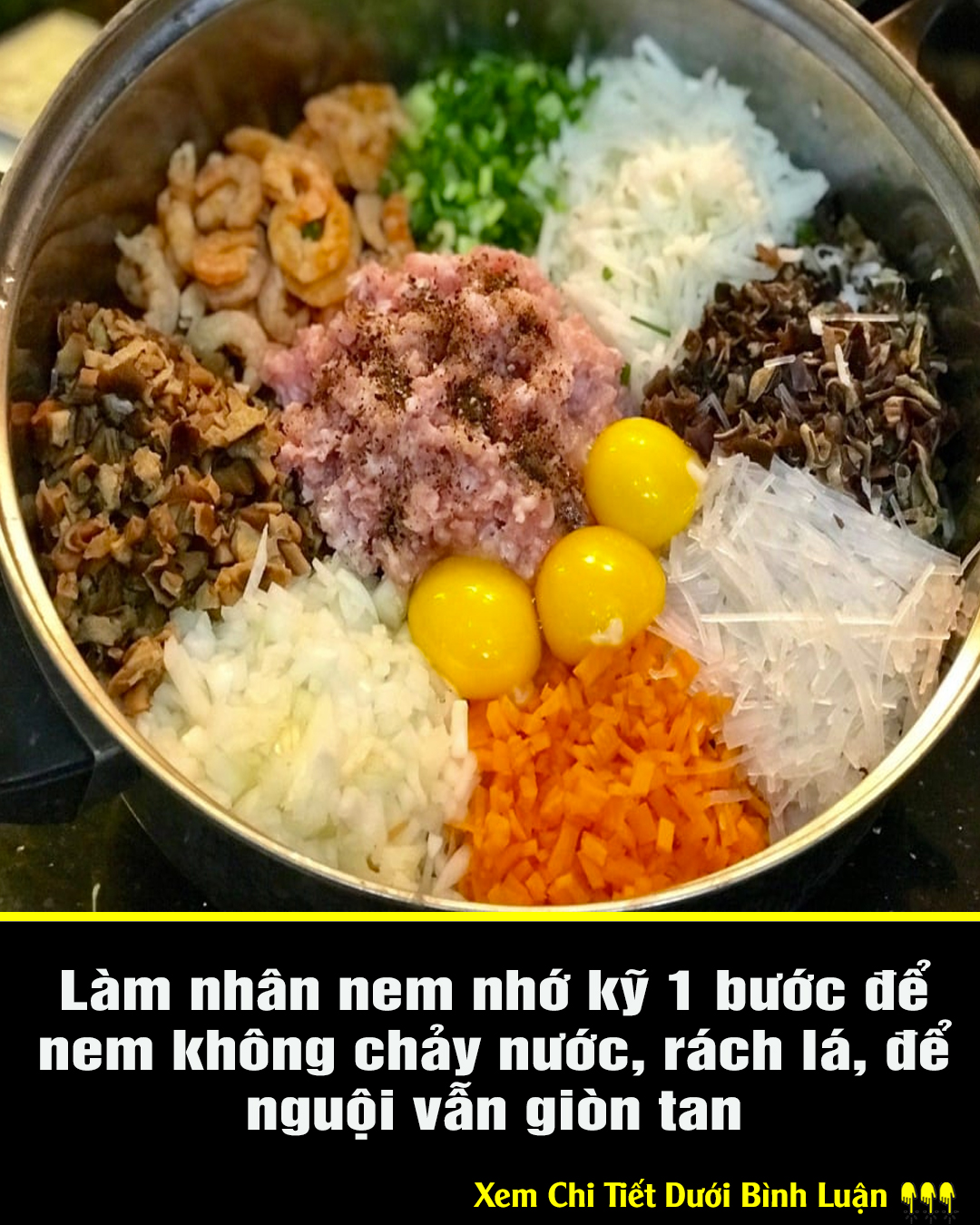 Làm nhân nem nhớ kỹ 1 bước để nem không chảy nước, rách lá, để nguội vẫn giòn tan