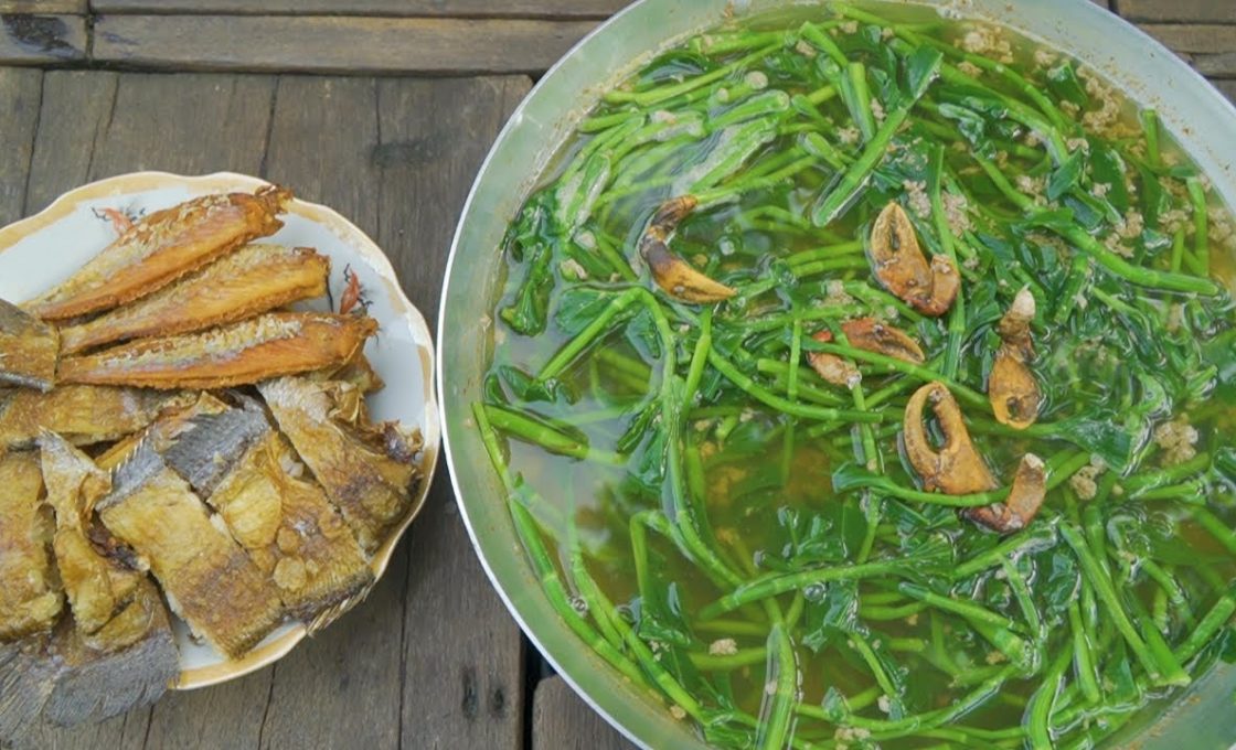 Rau trai nấu cùng tôm, tép ăn vô cùng ngọt, mát