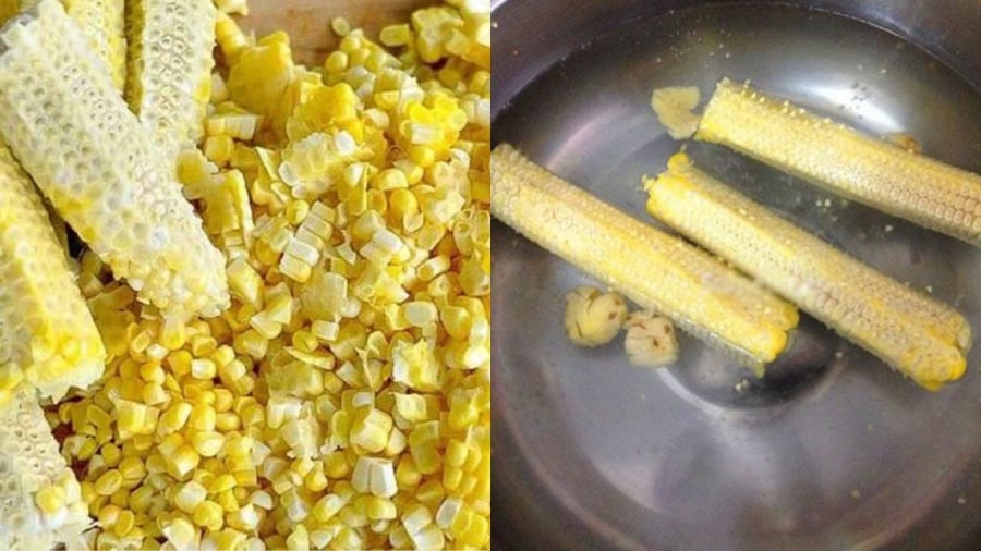 – Nếu dùng ngô non tách hạt để nấu súp, xào, thì lõi ngô đừng vội ném đi. Bạn hãy rửa lõi ngô đó cùng với lớp vỏ áo và râu ngô, cho vào nấu nước, sẽ được thức uống thanh nhiệt như bạn vẫn mua nước ngô ngoài hàng ngô luộc vậy.Bạn có thể chẻ lõi ngô ra nhỏ hơn để khi nấu nước ngọt bên trong tiết ra nhiều hơn. Nước ngô thanh mát, thơm ngon, nếu thích ngọt có thể thêm chút đường.