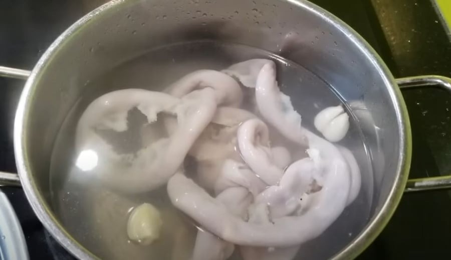 Khi luộc lòng lợn, bạn nên sơ chế kỹ để loại bỏ chất bẩn và mùi hôi của nguyên liệu.