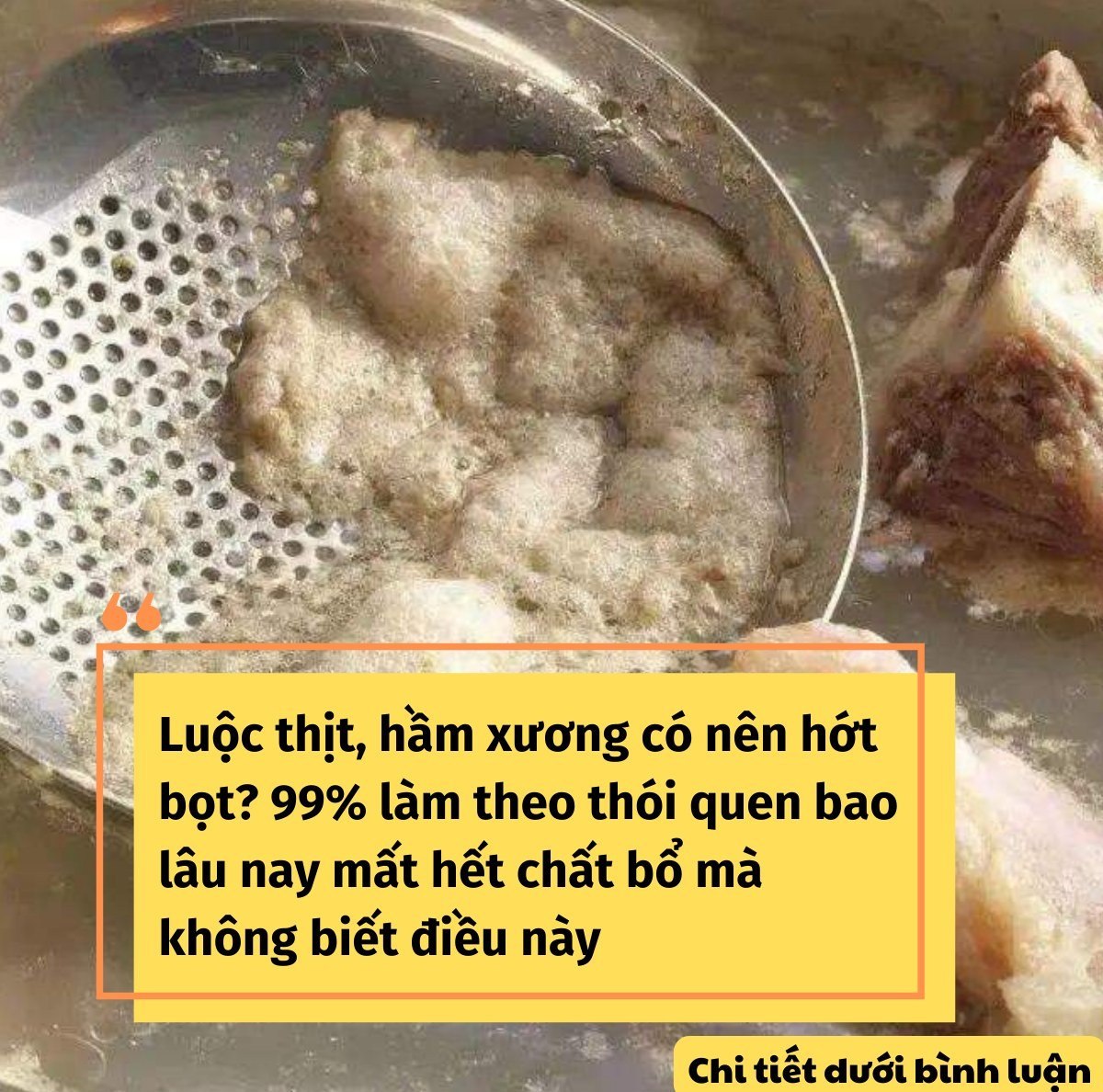 Trong thịt có 2 thành phần chính là protein và chất béo cùng một số thành phần phụ khác như nước, carbohydrate và các chất khác. Vì vậy, khi hầm xương hoặc luộc thịt thì các chất này cùng những lượng máu thừa và bụi bẩn bám trên bề mặt thịt sẽ tiết ra làm xuất hiện sủi bọt trắng.