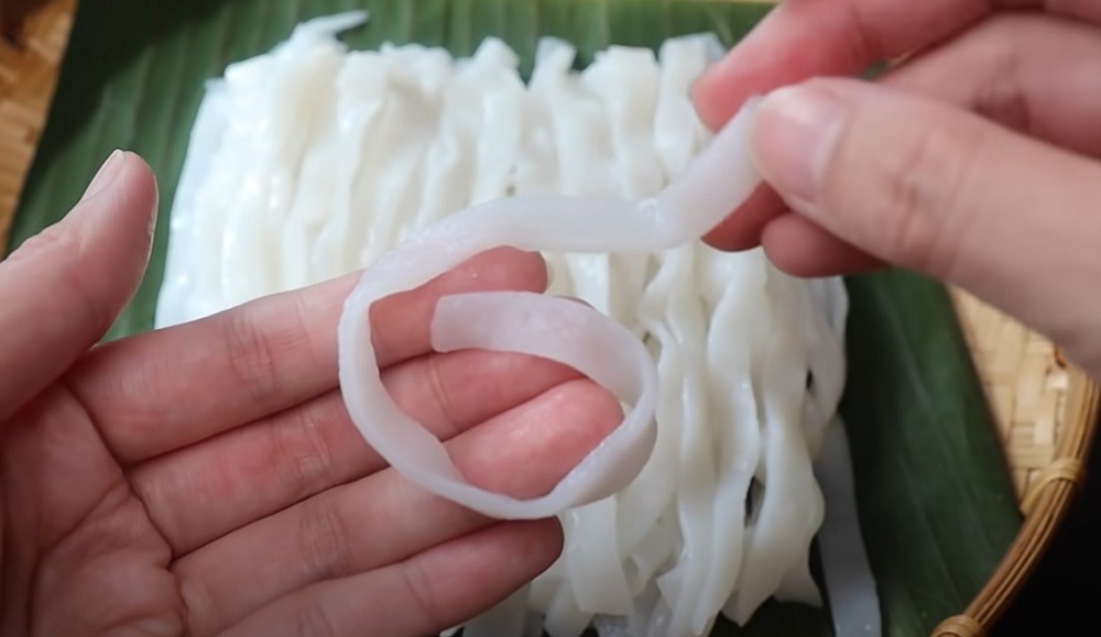 Tiếp theo, bạn cắt những miếng bột đã được cán mỏng thành những sợi phở vừa ăn là được.