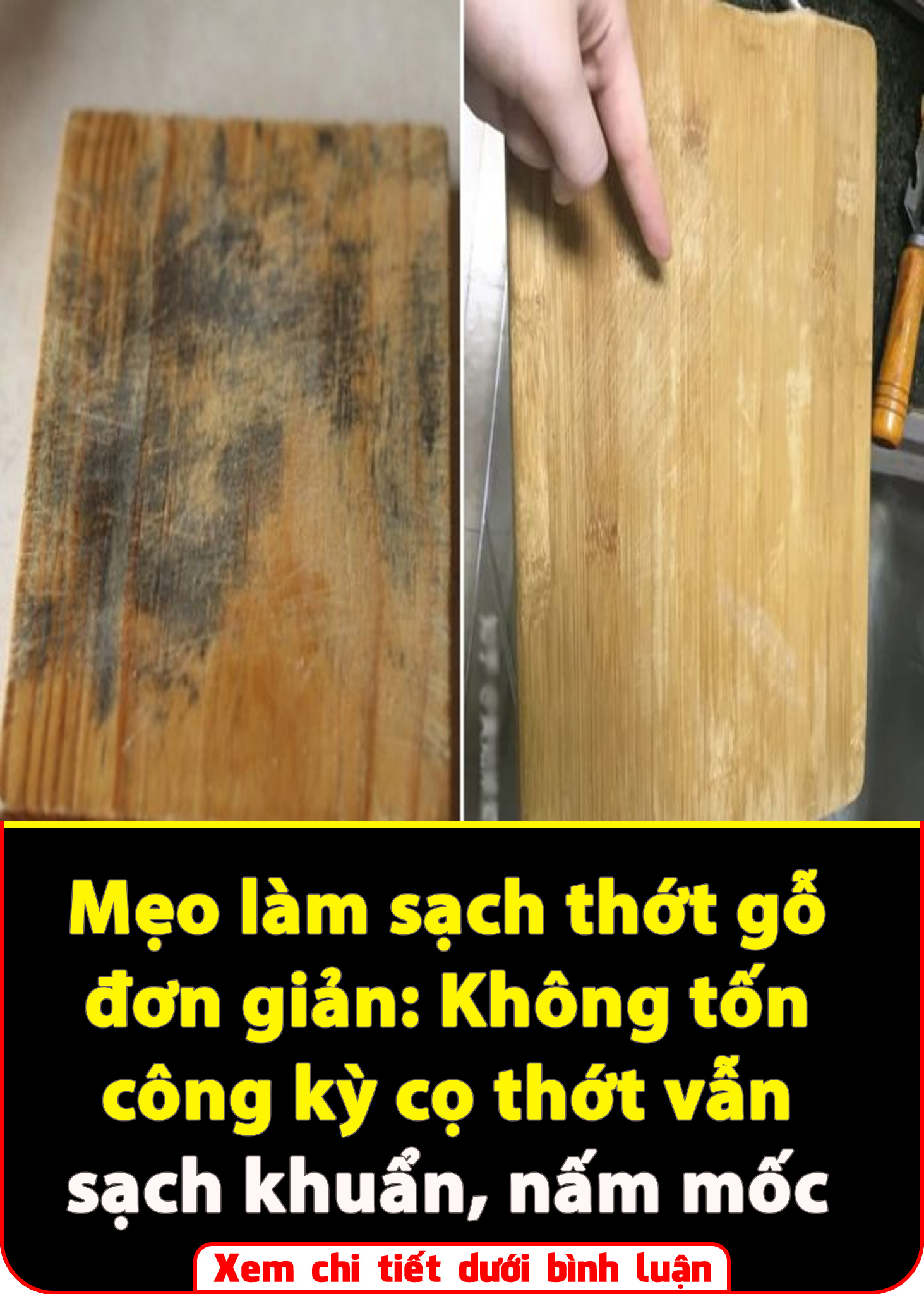 Với thớt có mùi hôi, bạn có thể ngâm trong nước vo gạo 3-5 phút. Sau đó, lấy thớt ra, cọ rửa lại bằng xà phòng, tráng bằng nước sạch và phơi khô.