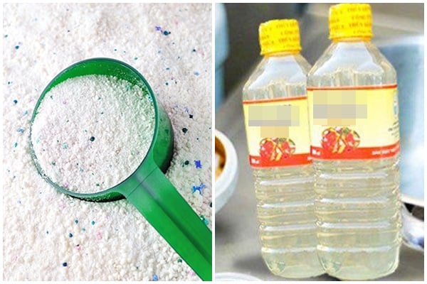 Trong trường hợp đường ống thoát nước bị tắc do vết dầu mỡ, bạn có thể cho thêm một ít giấm vào bột giặt rồi pha 3 cốc nước nóng. Bột giặt có khả năng tẩy uế mạnh, thêm ít giấm hiệu quả sẽ tốt hơn.