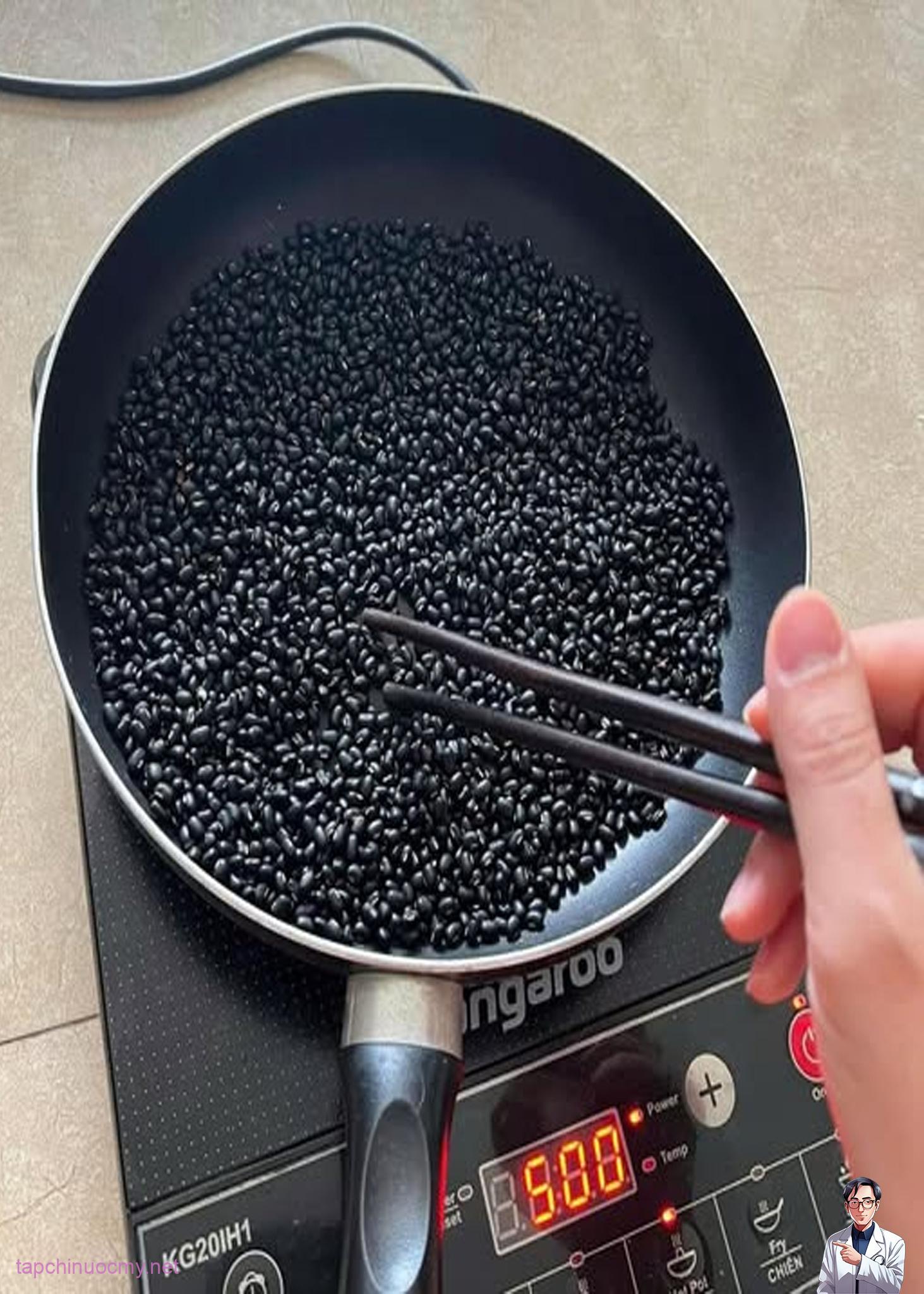Rang đậu đen trên lửa nhỏ đến khi có mùi thơm nhẹ giúp giảm tính hàn, làm nước đậu thơm ngon hơn và dễ tiêu hóa. Việc rang còn giúp hạn chế mùi “ngái” và giảm khả năng gây lạnh bụng.