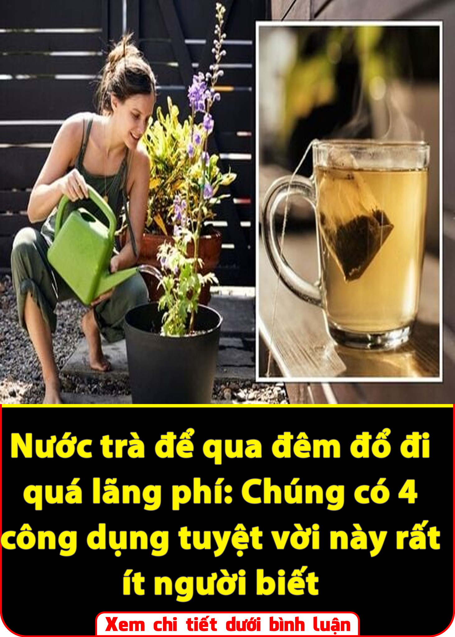 Bạn có thể sử dụng nước trà qua đêm đem đi tưới hoa và cây cảnh. Khi đó, cây và hoa sẽ phát triển tươi tốt khi được tưới nước trà này. Sở dĩ như vậy là bởi vì các chất như nitơ, phốt pho, kali cũng như các nguyên tố khác có trong trà chính là những chất dinh dưỡng cơ bản, cần thiết giúp cho sự phát triển toàn diện của cây.