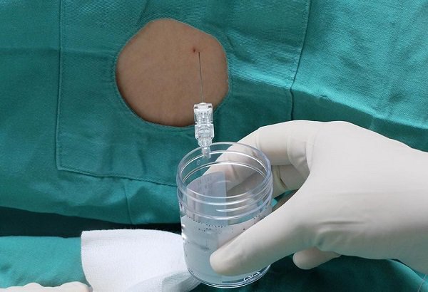 Chọc dò dịch não tủy để làm xét nghiệm đánh giá tình trạng viêm não – màng não cho cháu bé.