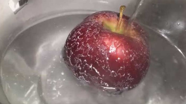 Chỉ bằng cách đổ nước nóng lên quả táo, bạn sẽ kiểm tra được đó là quả táo an toàn hay chứa chất bảo quản gây nguy hiểm cho sức khỏe.