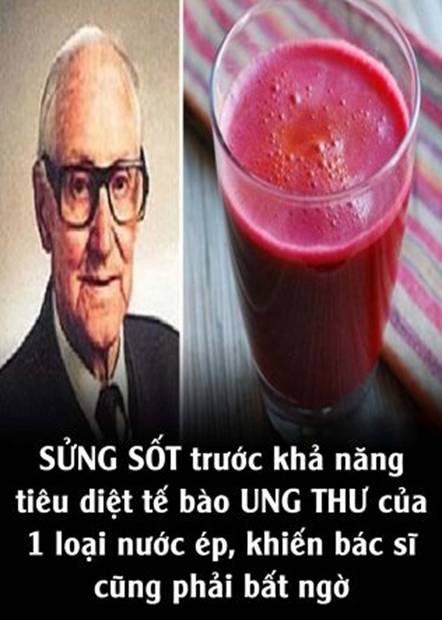 + Ly nước trái cây đặc biệt này sẽ tăng cường hệ thống miễn dịch, làm sạch máu và cung cấp năng lượng cần thiết cho cơ thể. Điều quan trọng nhất hơn cả là nó đã được chứng minh có hiệu quả cực cao trong cuộc chiến chống lại các tế bào ung thư.