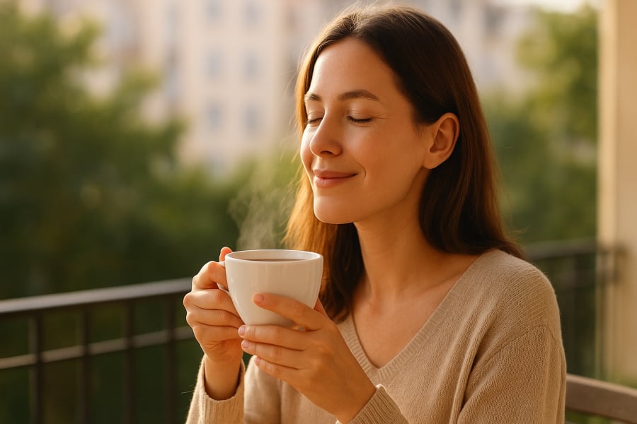 Mỗi ly trà đen chứa khoảng 47–90 mg caffeine – thấp hơn so với cà phê (khoảng 95 mg mỗi ly), nhưng đủ để giúp bạn tỉnh táo, tập trung mà không bị “quá tải” caffeine dẫn đến tim đập nhanh hay mất ngủ. Đặc biệt, trà đen còn chứa L-theanine – một axit amin có khả năng làm dịu tâm trí và giảm căng thẳng.