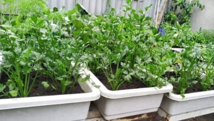 5-7 ngày sau, bẹ lá xung quanh của cần tay sẽ khô và vàng, nhưng phần chồi non ở giữa vẫn xanh mướt và mọc cao hơn một chút. Lúc này, bạn hãy chuyển cần tây vào chậu đất.