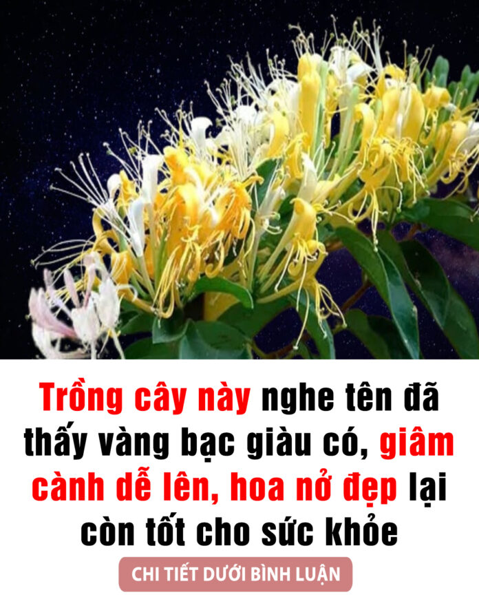 Loại cây nhắc tới ở đây chính là cây kim ngân hoa leo. Trồng một giàn kim ngân trước nhà hoặc chậu hoa kim ngân kleo lên bờ tường hoặc cắm cọc cho cây leo cột trước nhà sẽ rất đẹp.
