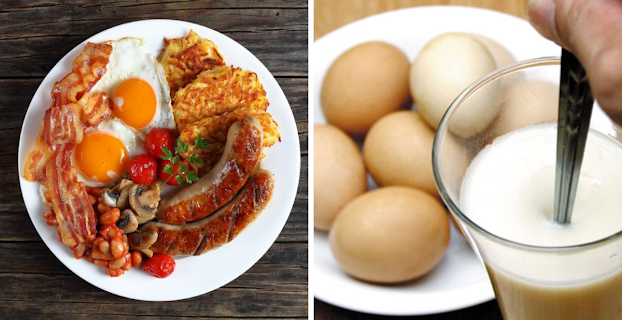 1. Ăn trứng gà kết hợp với thịt xông khói