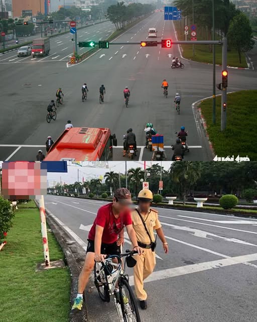 Người đi xe đạp vượt đèn đỏ cũng sẽ bị phạt. Ảnh: Chân Phúc