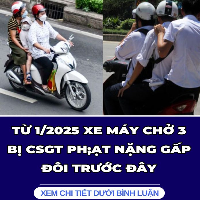 Mức xử phạt xe máy chở quá người tăng gấp đôi so với trước đây