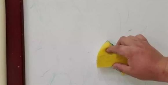 Bây giờ, bạn hãy lấy một miếng cọ rửa, nhúng vào dung dịch đã chuẩn bị và sử dụng nó để lau tường trắng.
