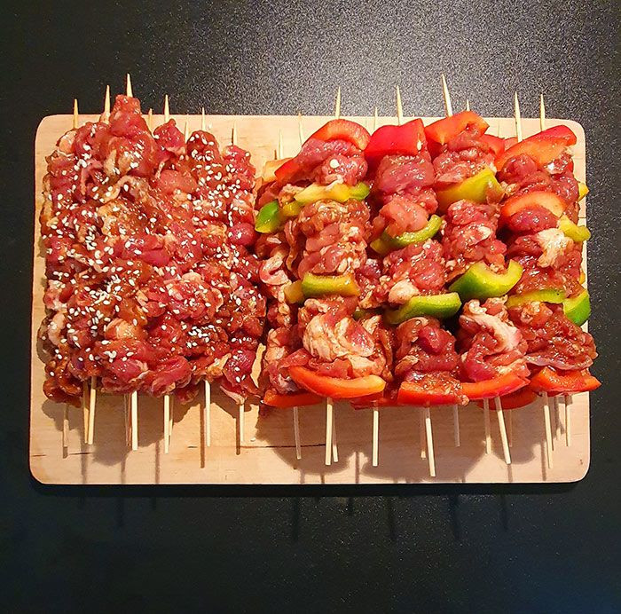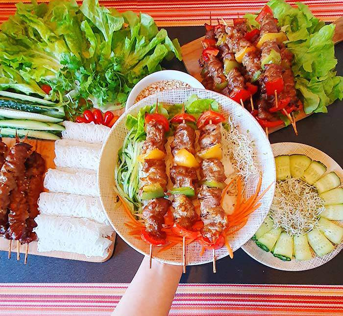 – Không nên làm xiên thịt quá dày và cuốn quá chặt vì sẽ làm mất thời gian nướng và có thể khiến bên ngoài cháy, bên trong sống.