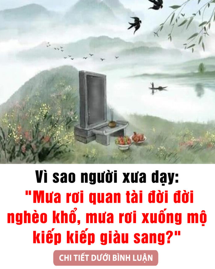 Thời xưa, nhiều người truyền tai nhau câu nói: “Mưa rơi quan tài đời đời nghèo khổ, mưa rơi xuống mộ kiếp kiếp giàu sang”. Tuy vậy, không phải ai cũng hiểu hết ý nghĩa của câu nói này.