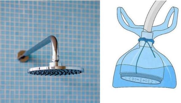 Nếu không thể tháo rời vòi hoa sen, bạn có thể sử dụng túi nilon đựng giấm bọc vào đầu vòi hoa sen ròi dùng dây buộc cố định lại và ngâm trong vòng 1 tiếng. Sau đó cũng lấy kim để chọc các cặn bẩn và xả nước.